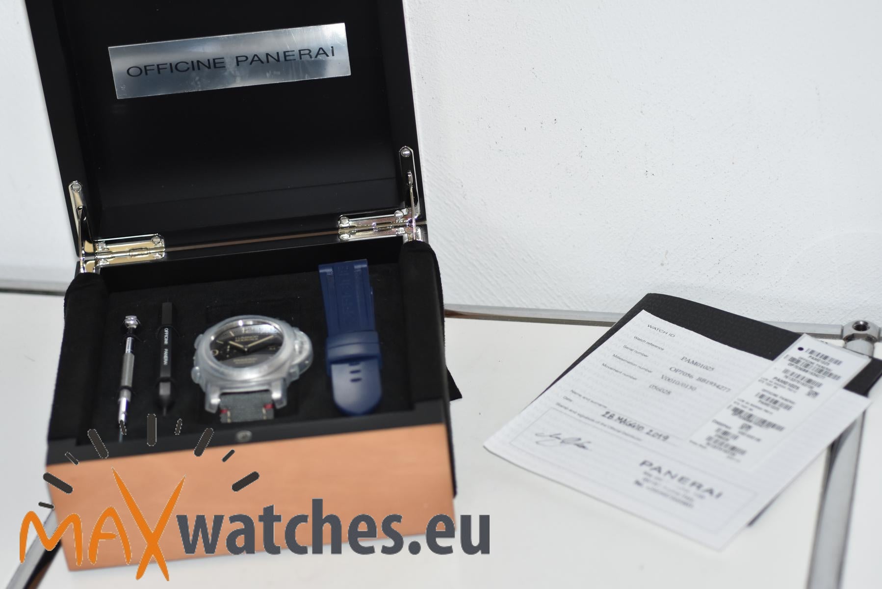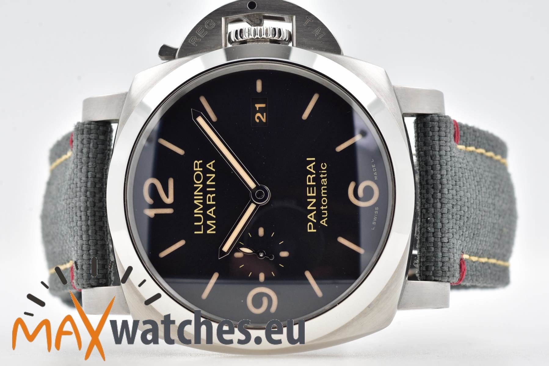 Movement: Panerai automatic, hour and minute hands, small second hand, date